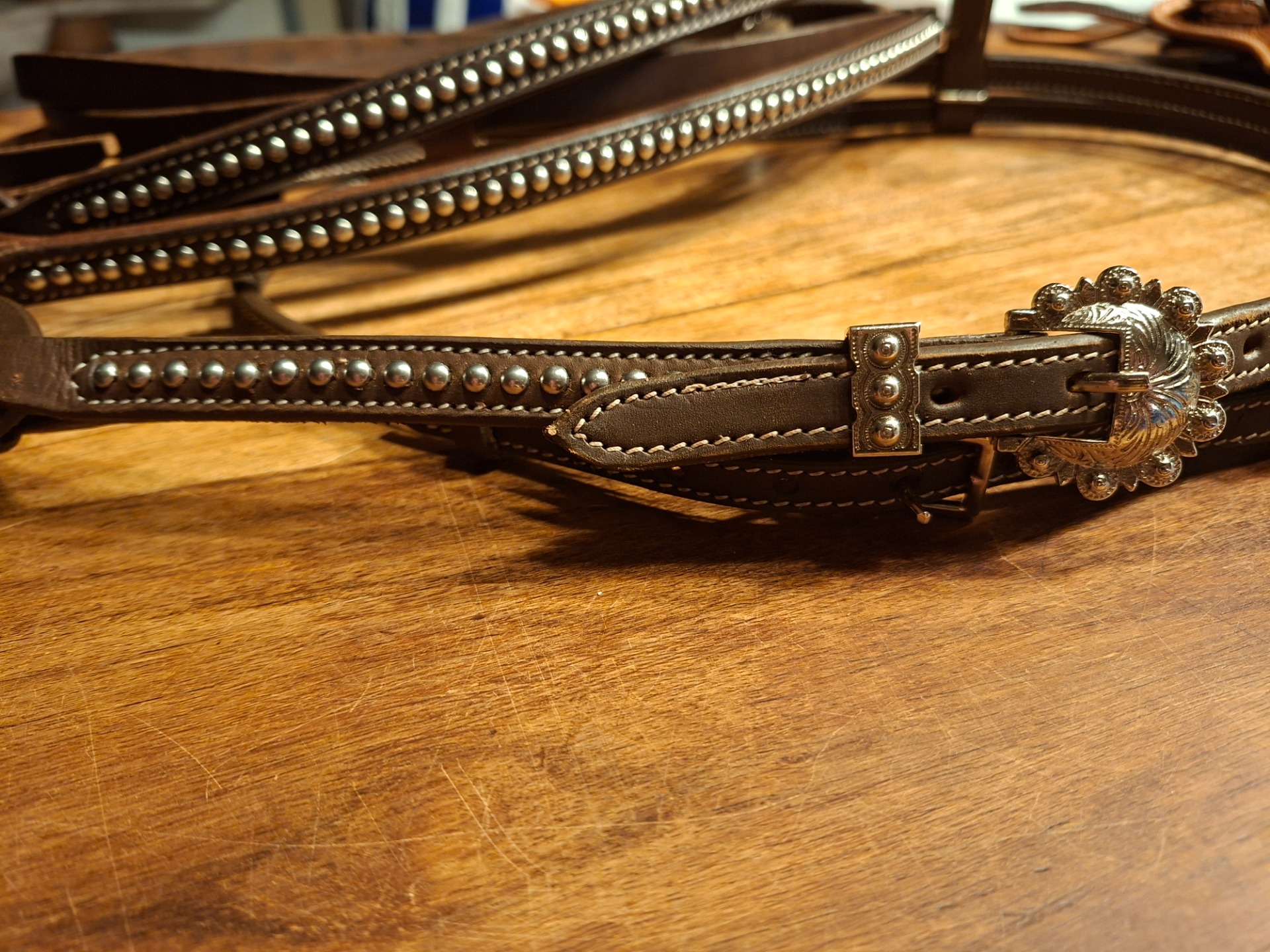 Hoofdstel met wave browband en antique silver dots op de browband and cheekpieces.